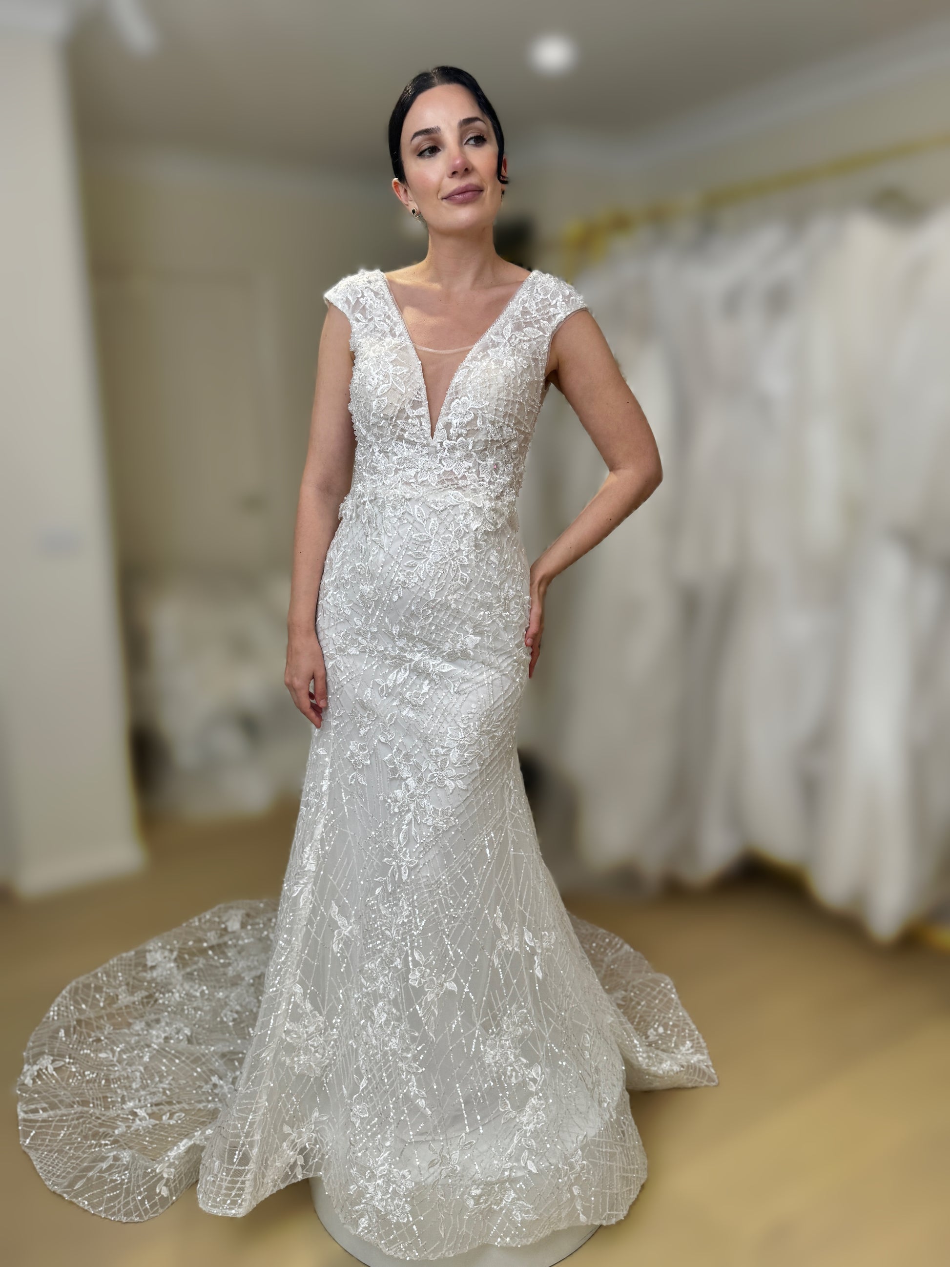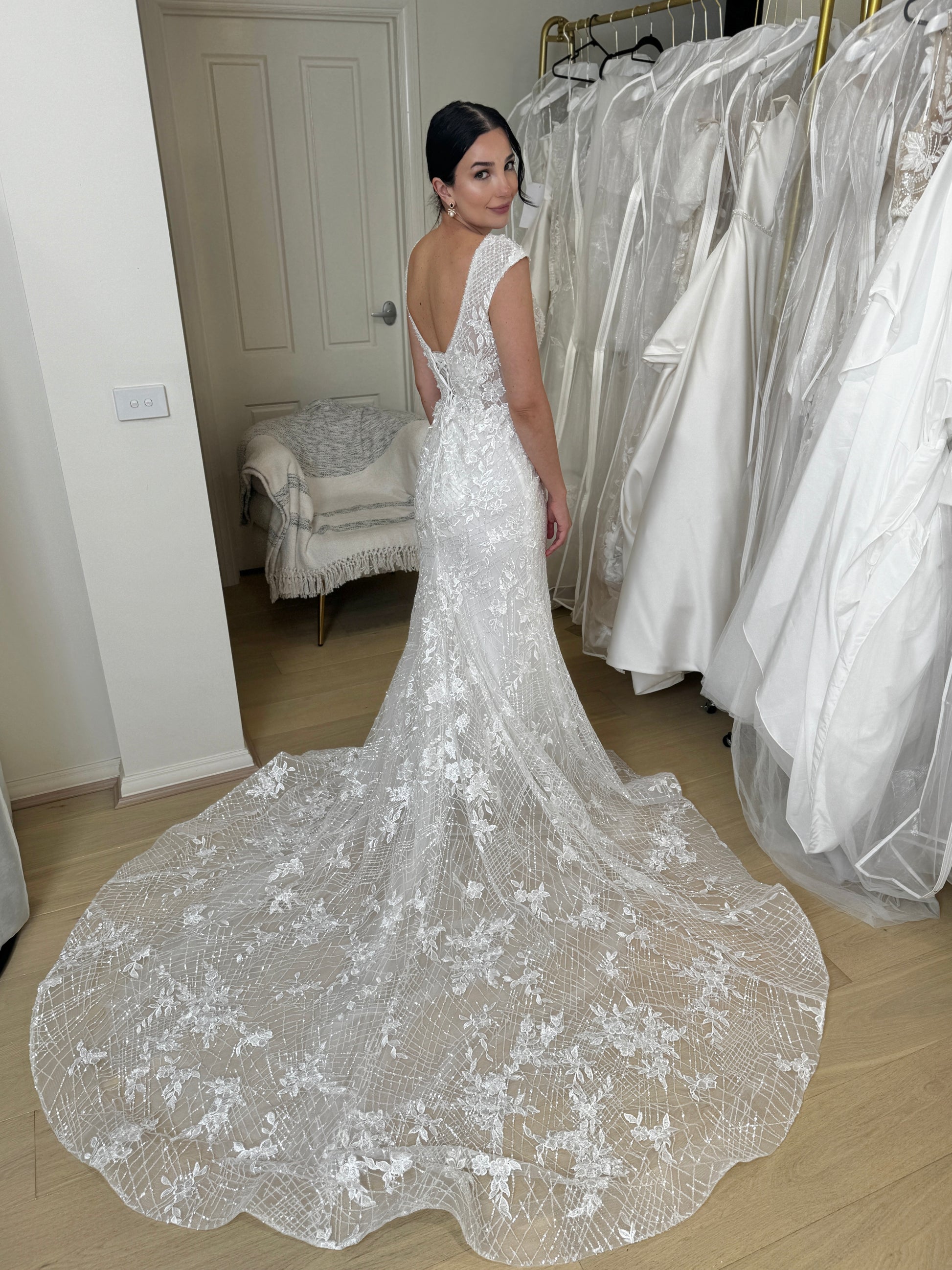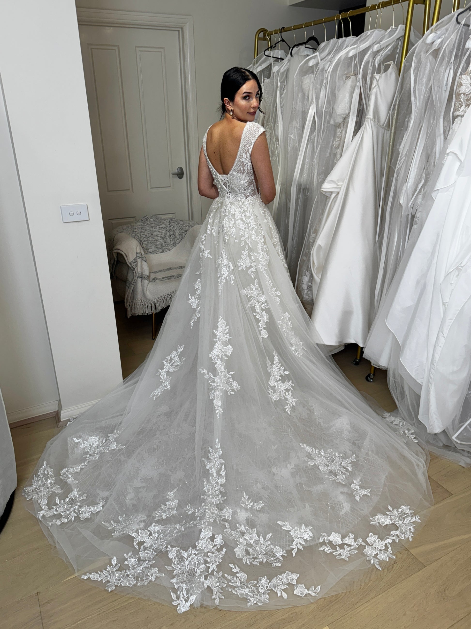 Sample size AU14 with lace-up back, which would fit AU12-AU16