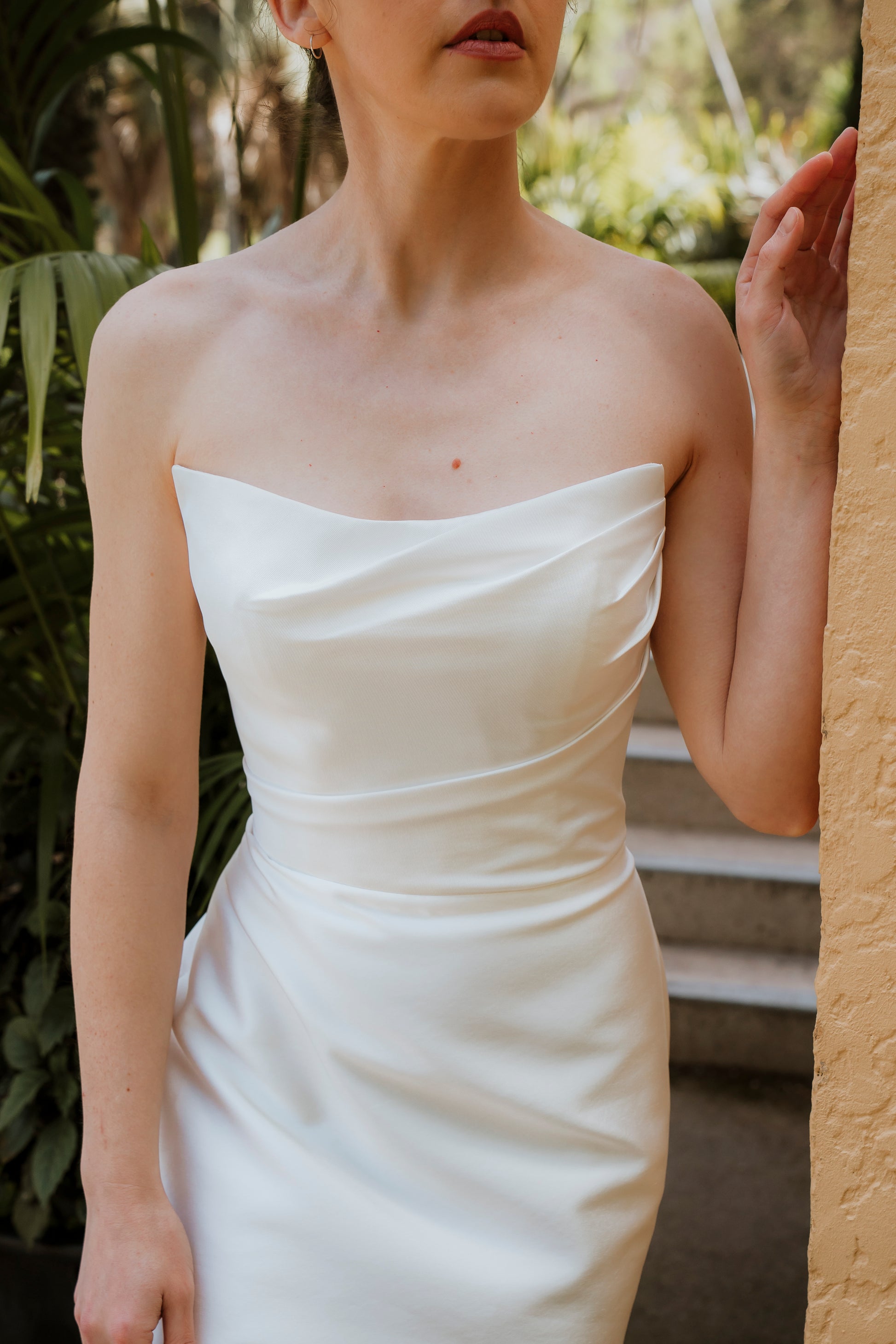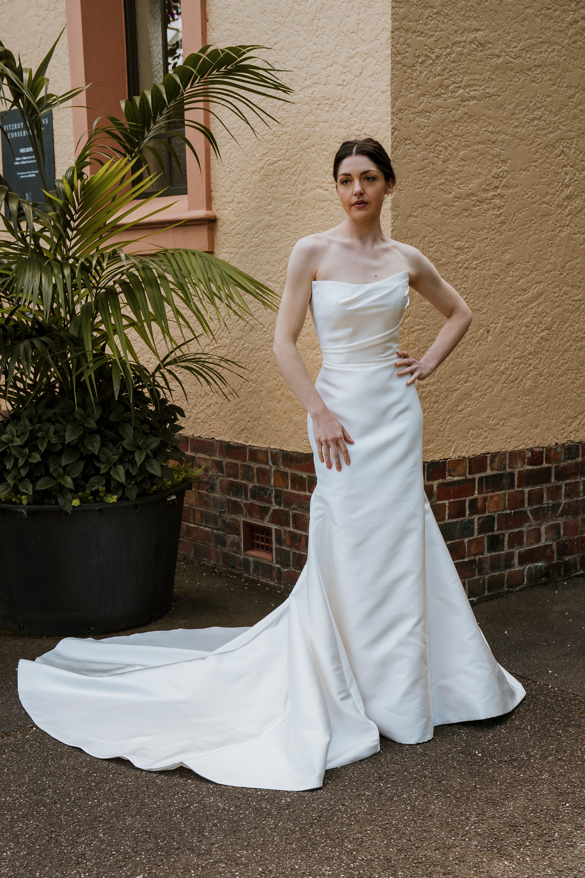 Drew is the definition of structured elegance and timeless luxury. Crafted from premium Mikado, this dress offers a flattering, architectural look with a crisp finish and rich lustre that is simply unforgettable.