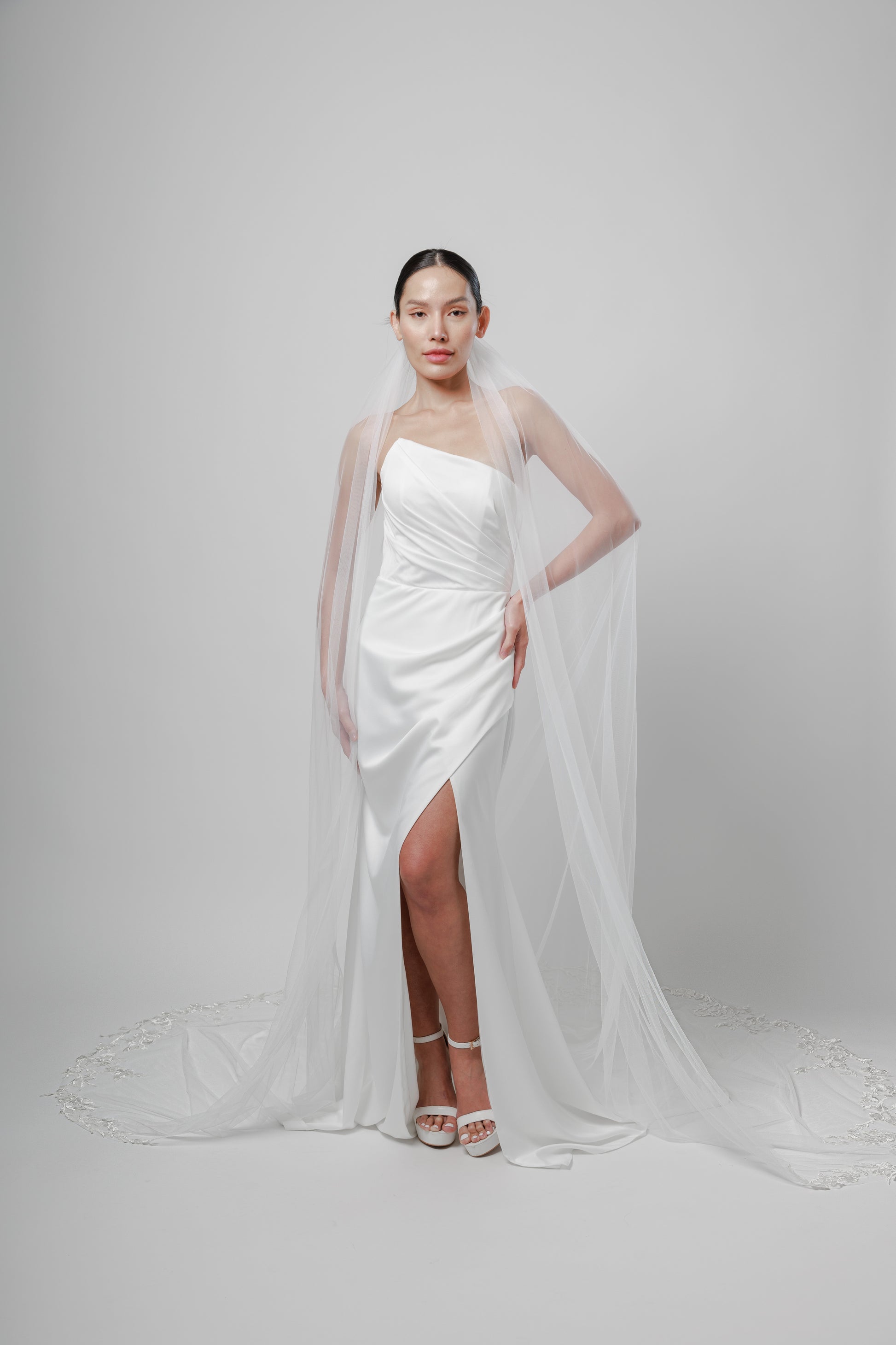 ELISE I Single Tier Veil with Lace Appliqués