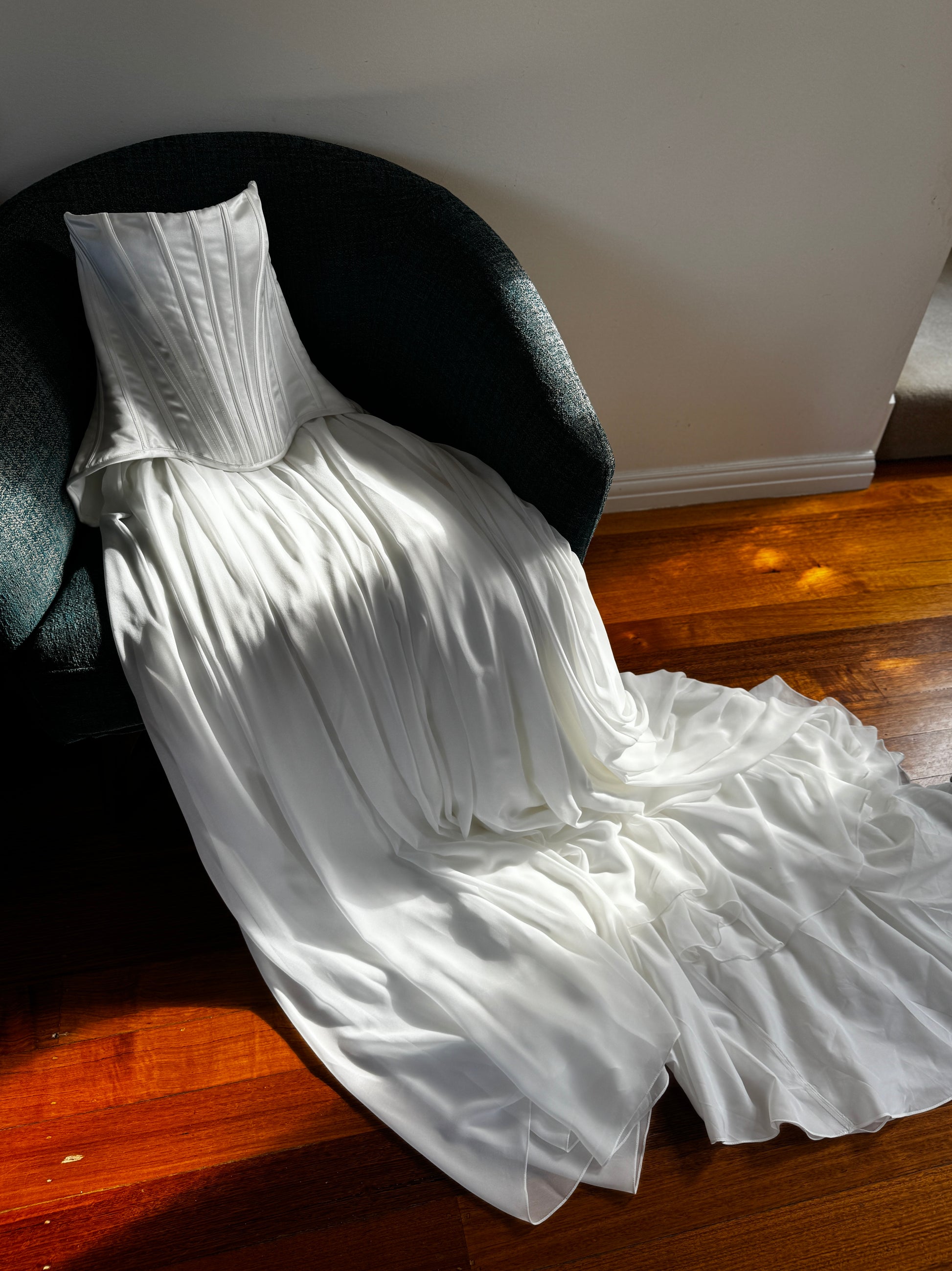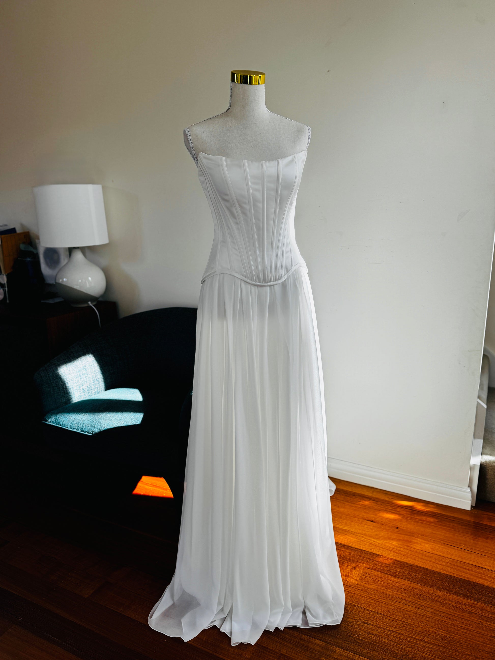 This is a one-of-a-kind hire piece, available in a size 10 (AU10-12).