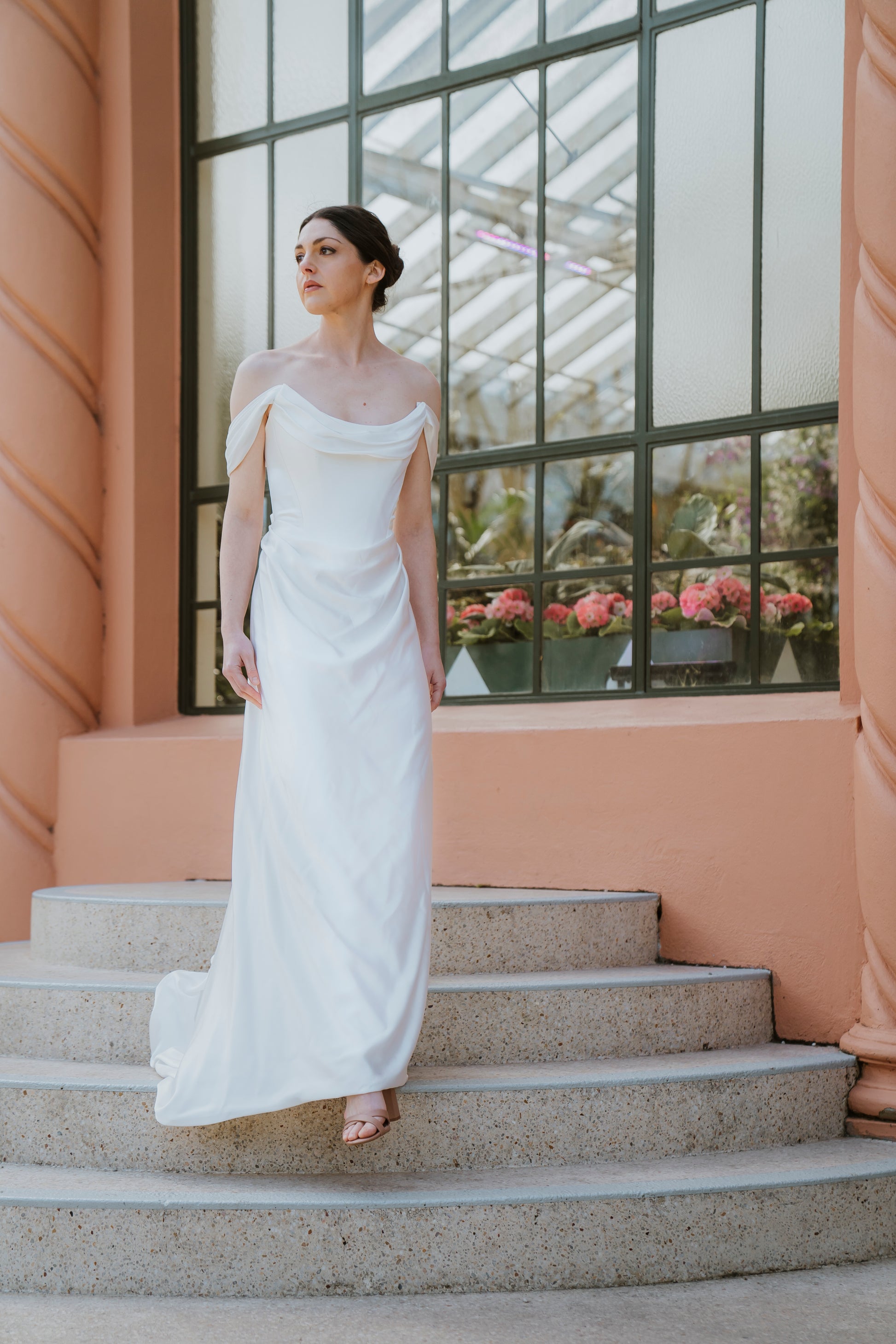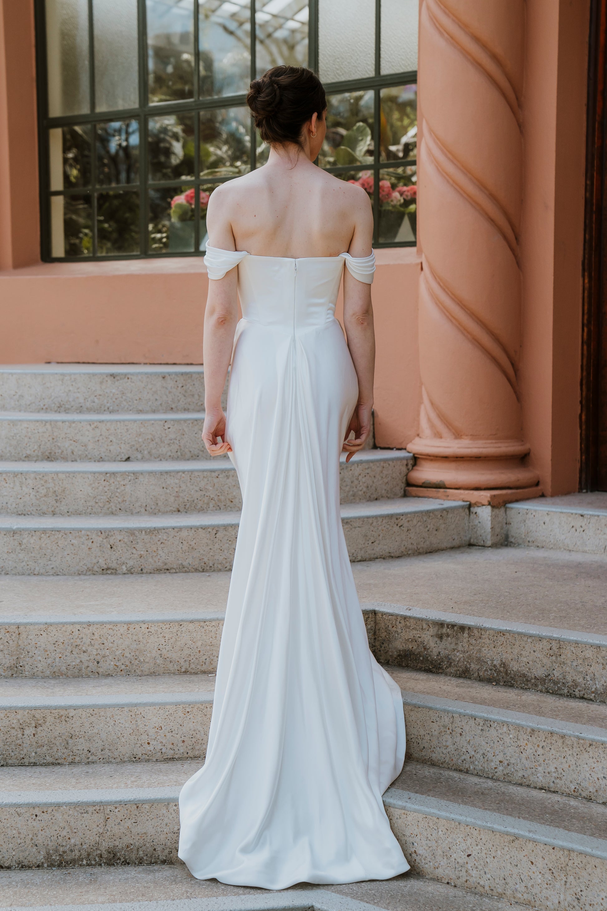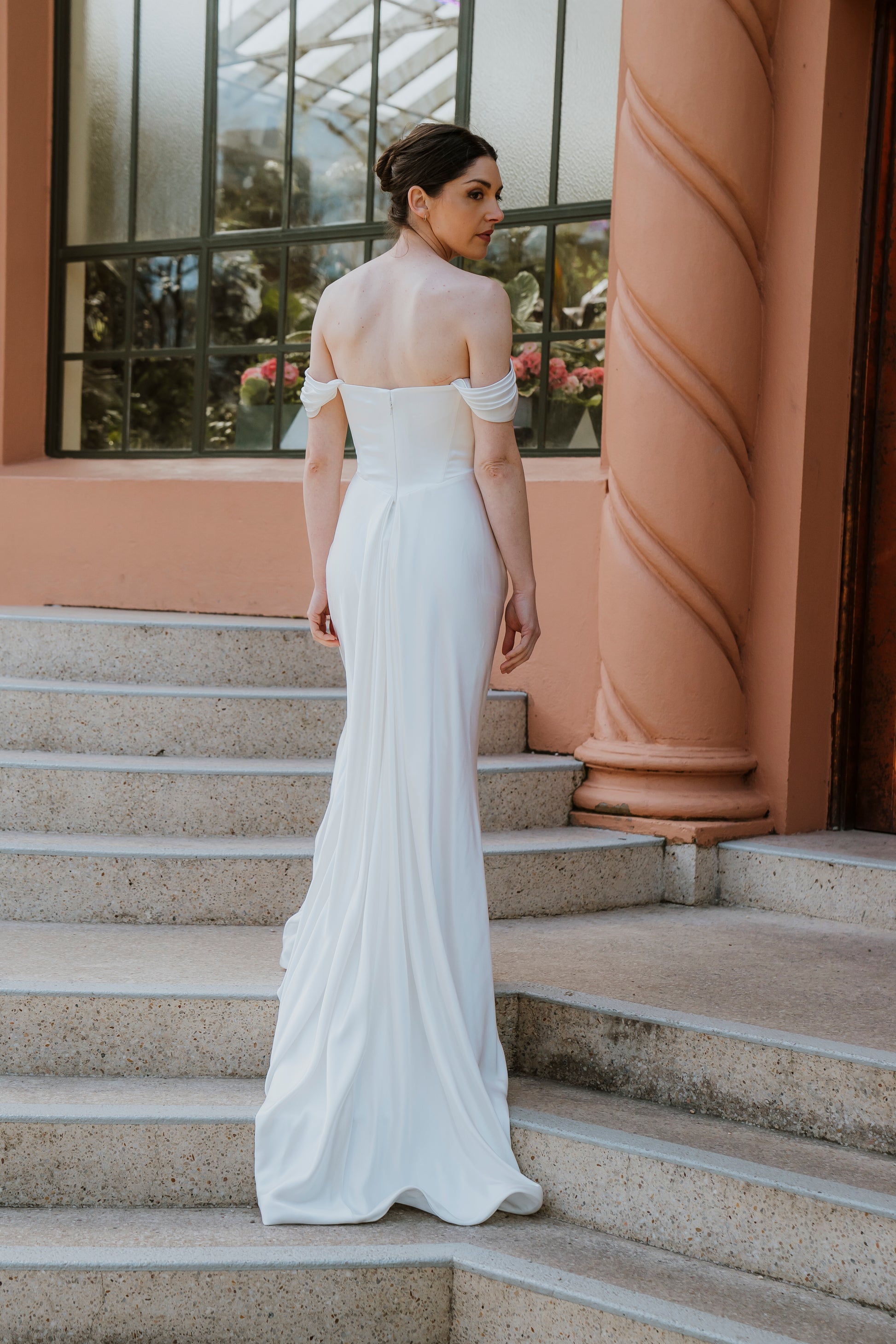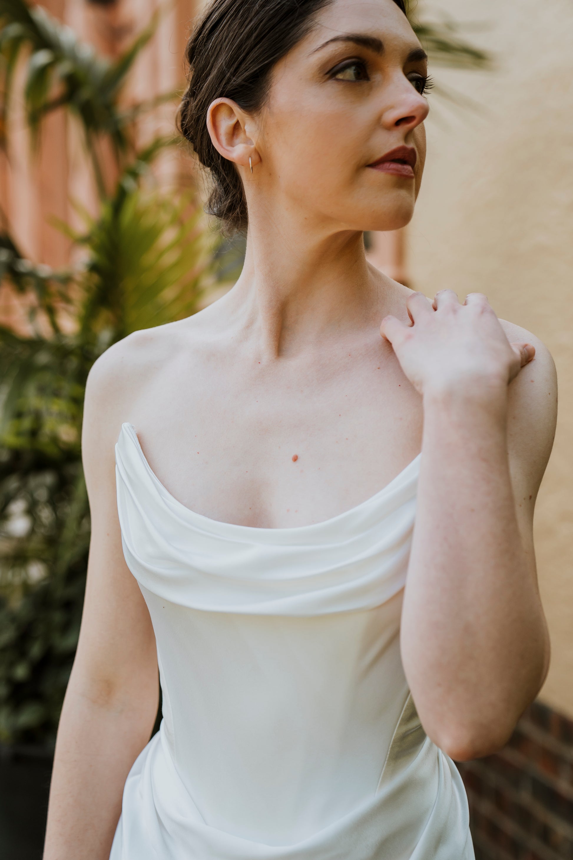 INGRID is an ode to timeless romance and understated luxury, crafted for the bride who desires sophisticated elegance with a touch of Old Hollywood glamour. It glides over the figure, creating a silhouette that is both sensual and exquisitely graceful.