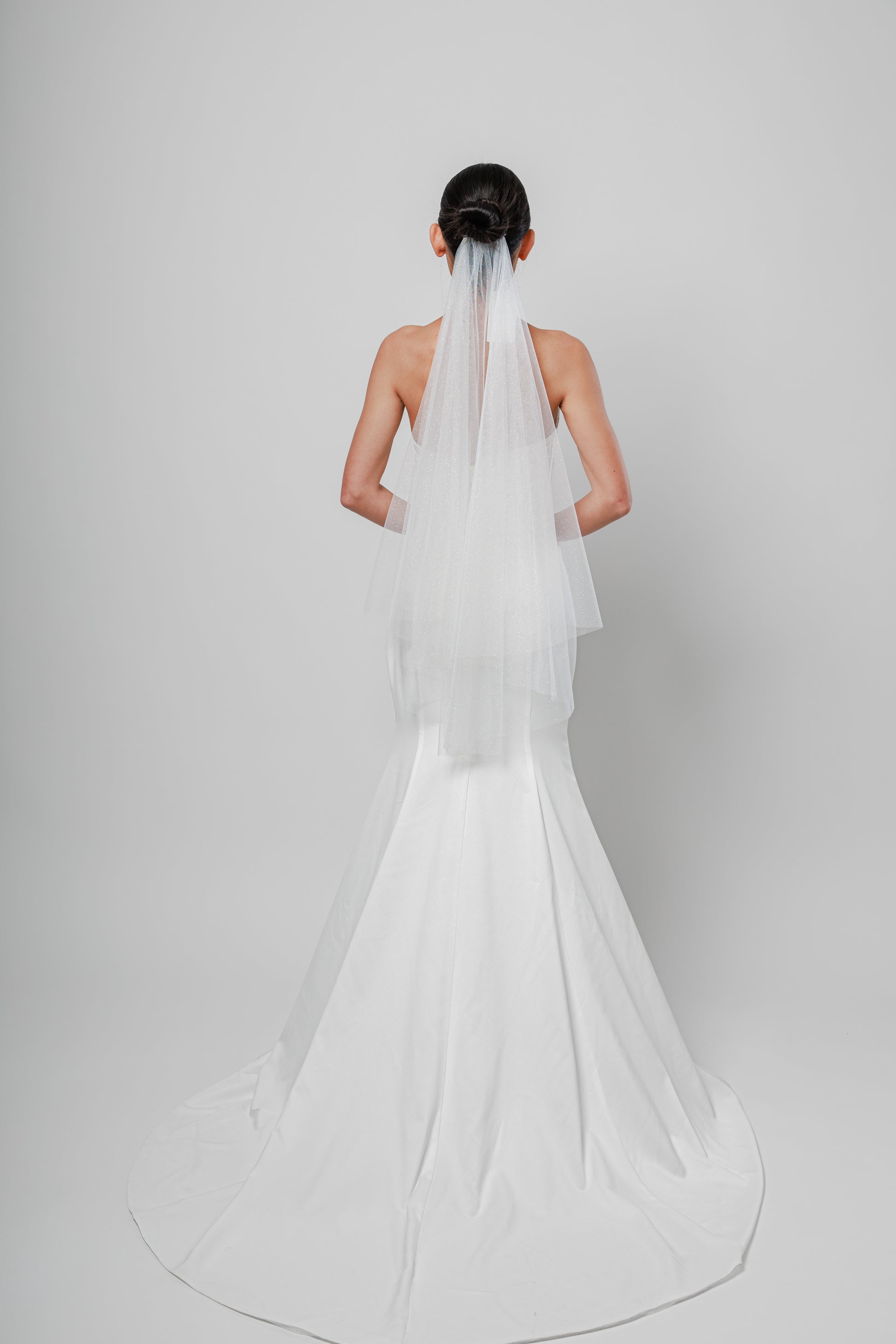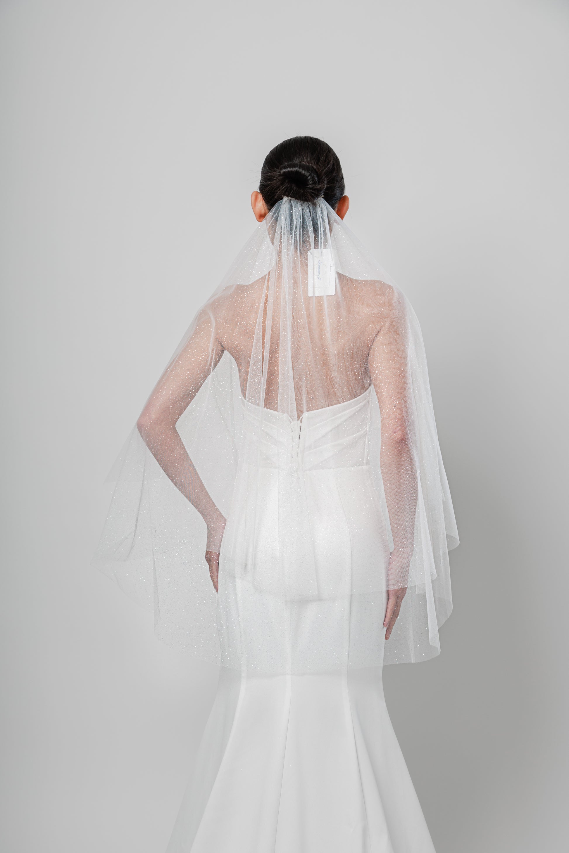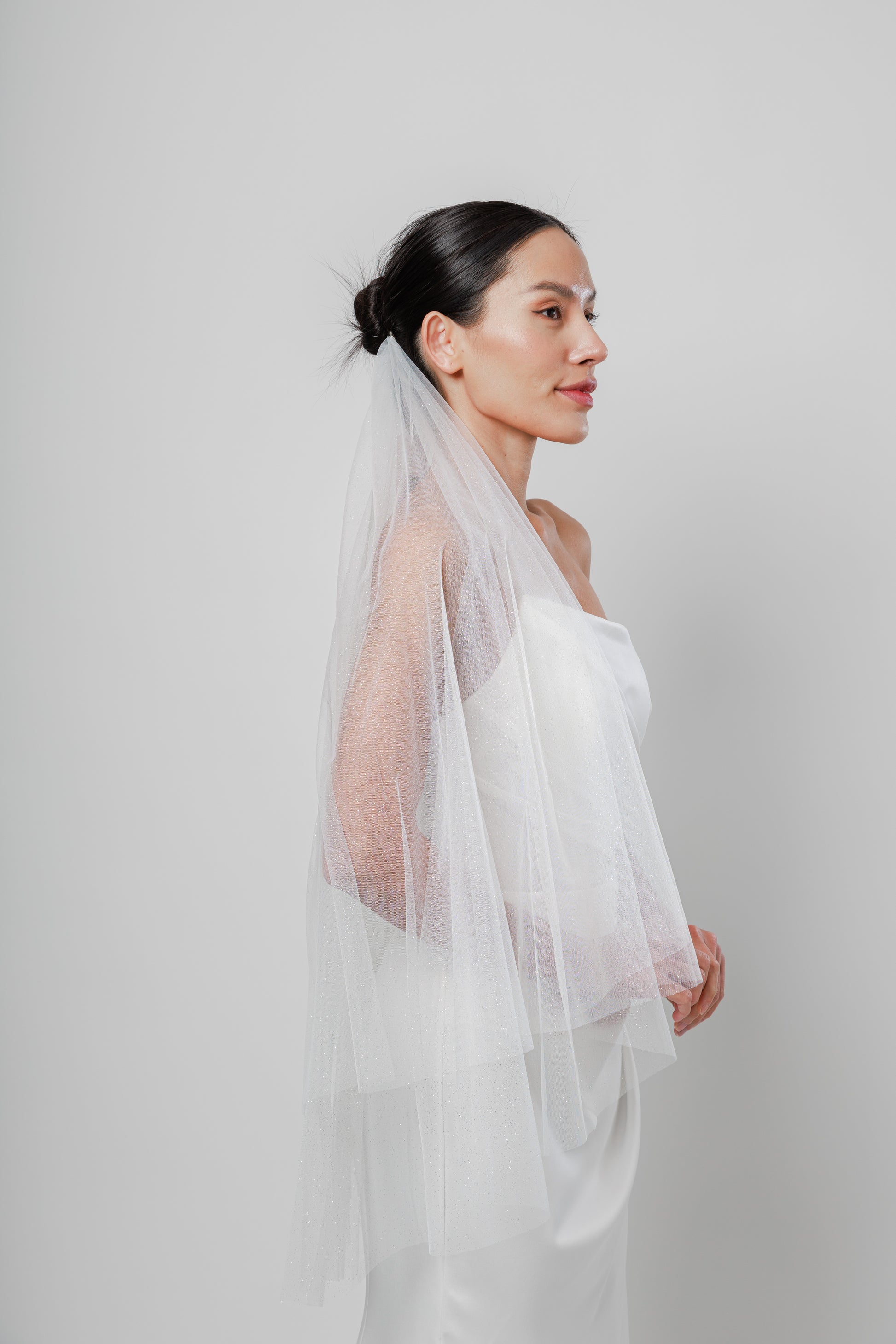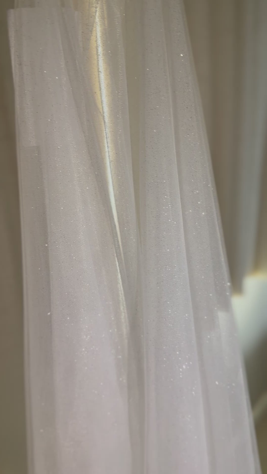 The Stella Veil brings a touch of celestial sparkle to your bridal look. Crafted from soft tulle, this tier to tier design is delicately infused with shimmering details, creating a radiant and elegant effect. Perfect for brides who want to shine on their special day.