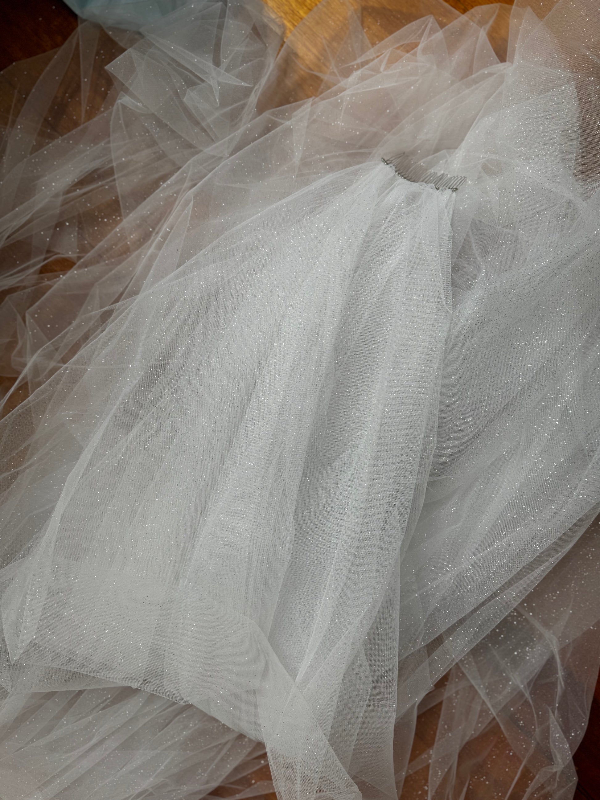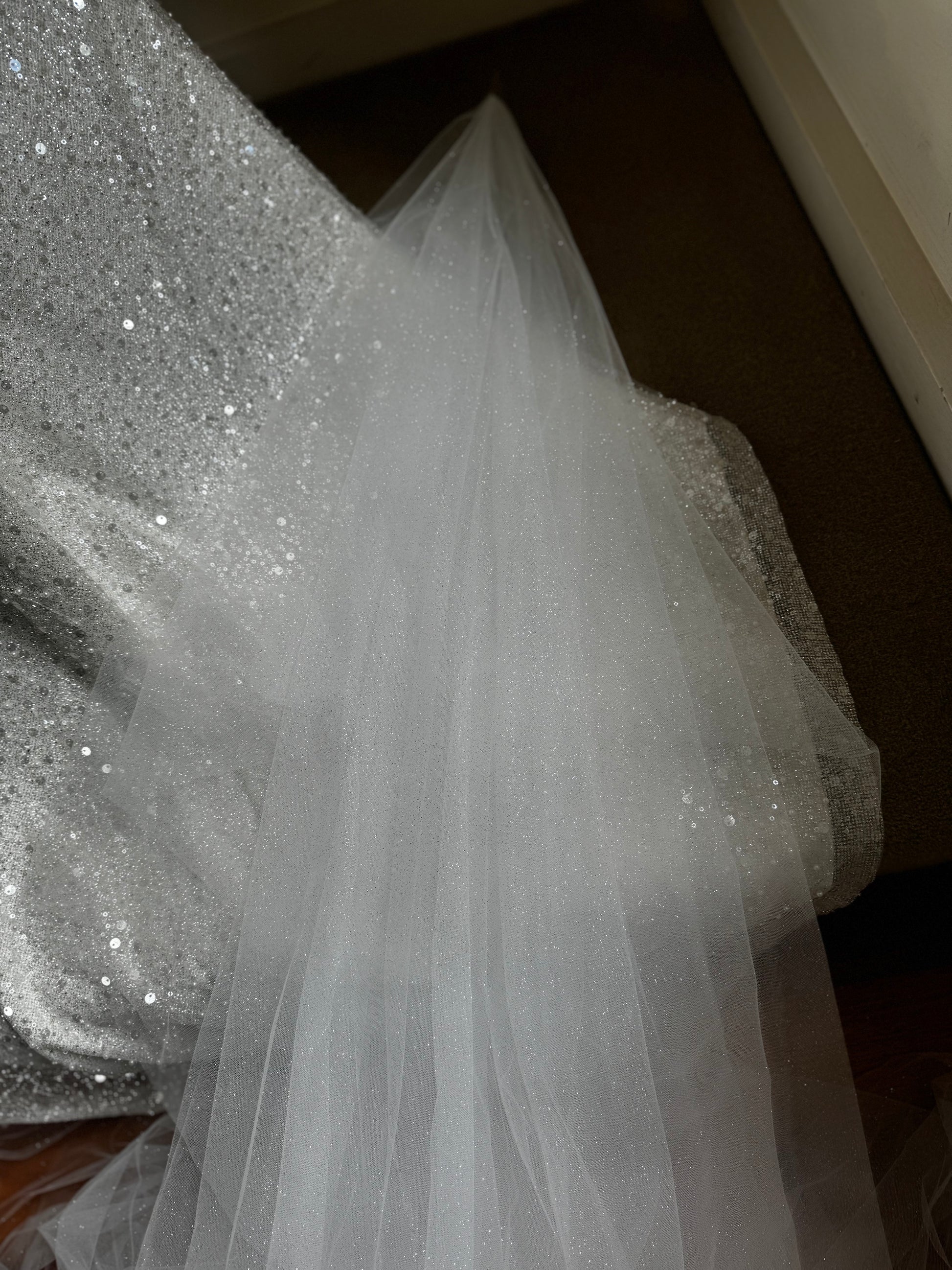 - Design: One or two-tier veil with subtle sparkles for a luminous, ethereal finish.