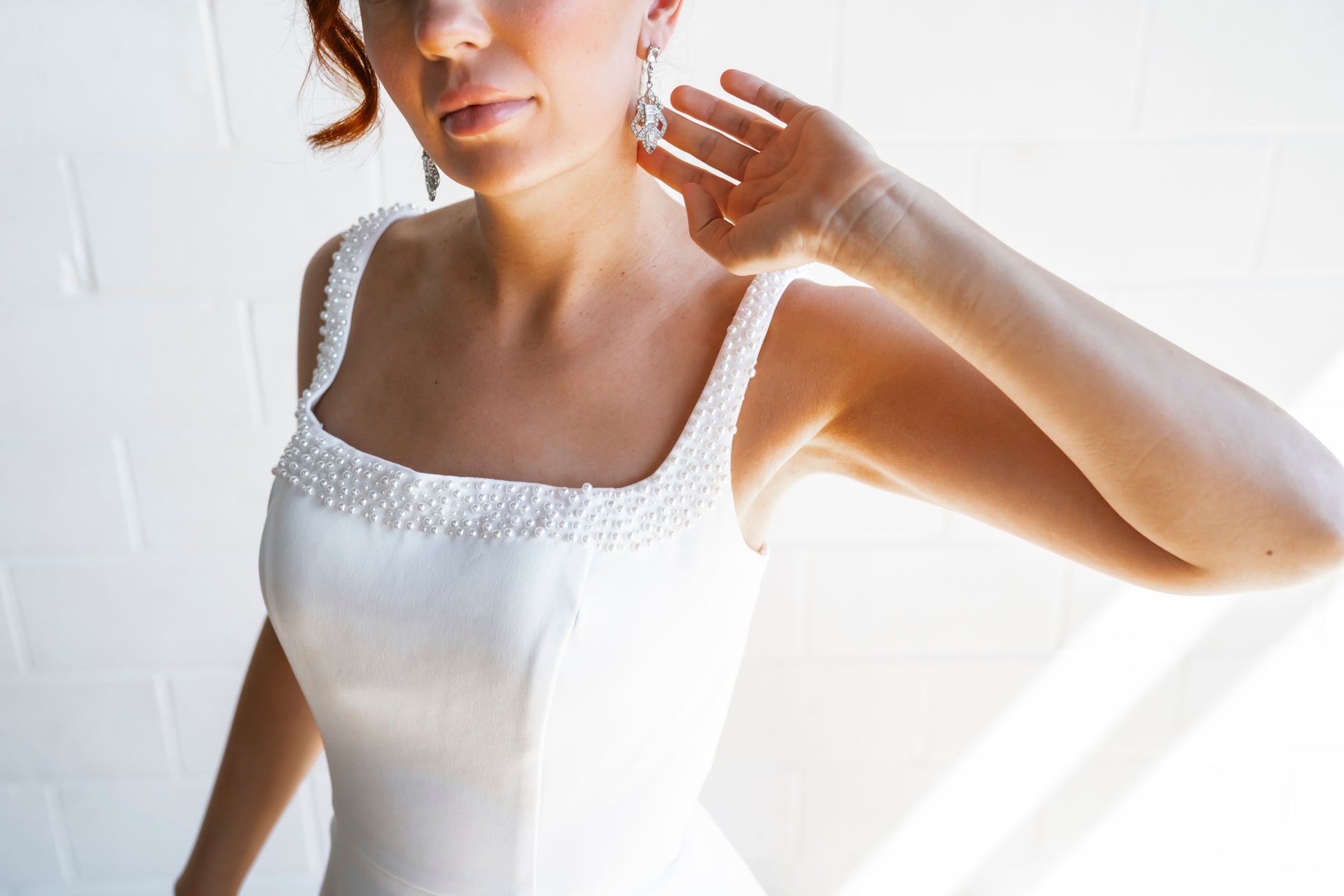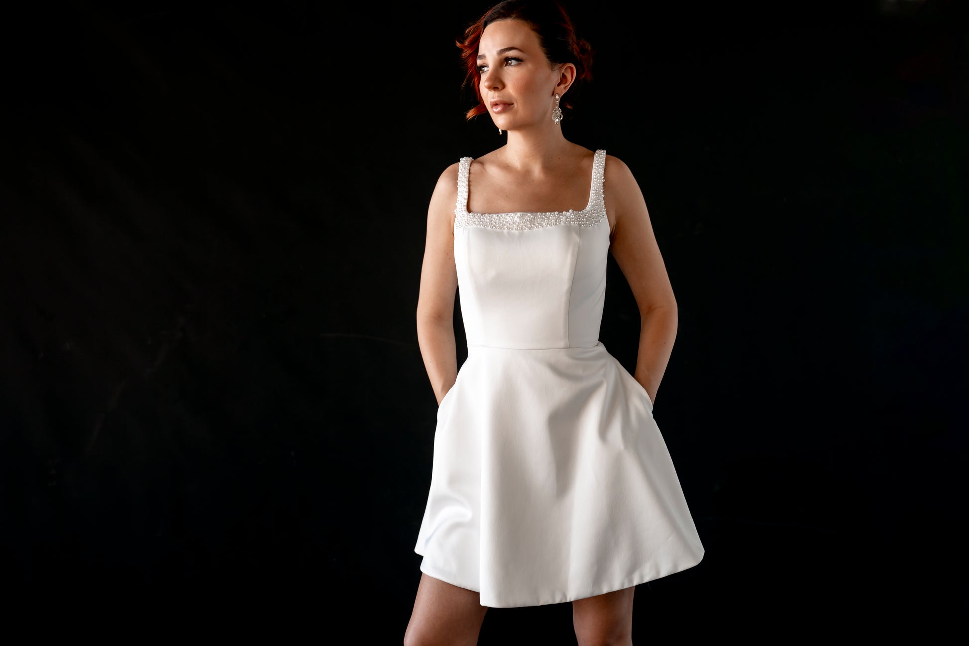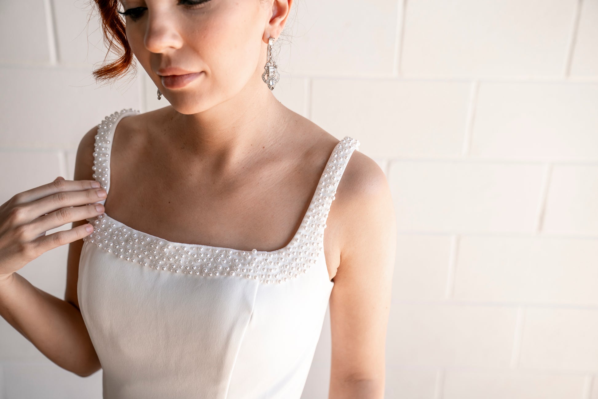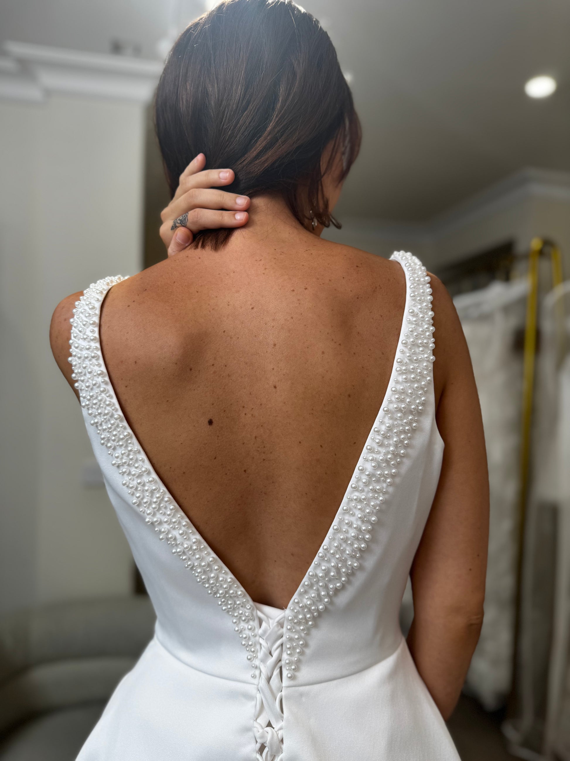 Available in size 12 (fits AU10 – 14) with lace-up back for flexible fit. Perfect for reception, engagement or after-party looks.