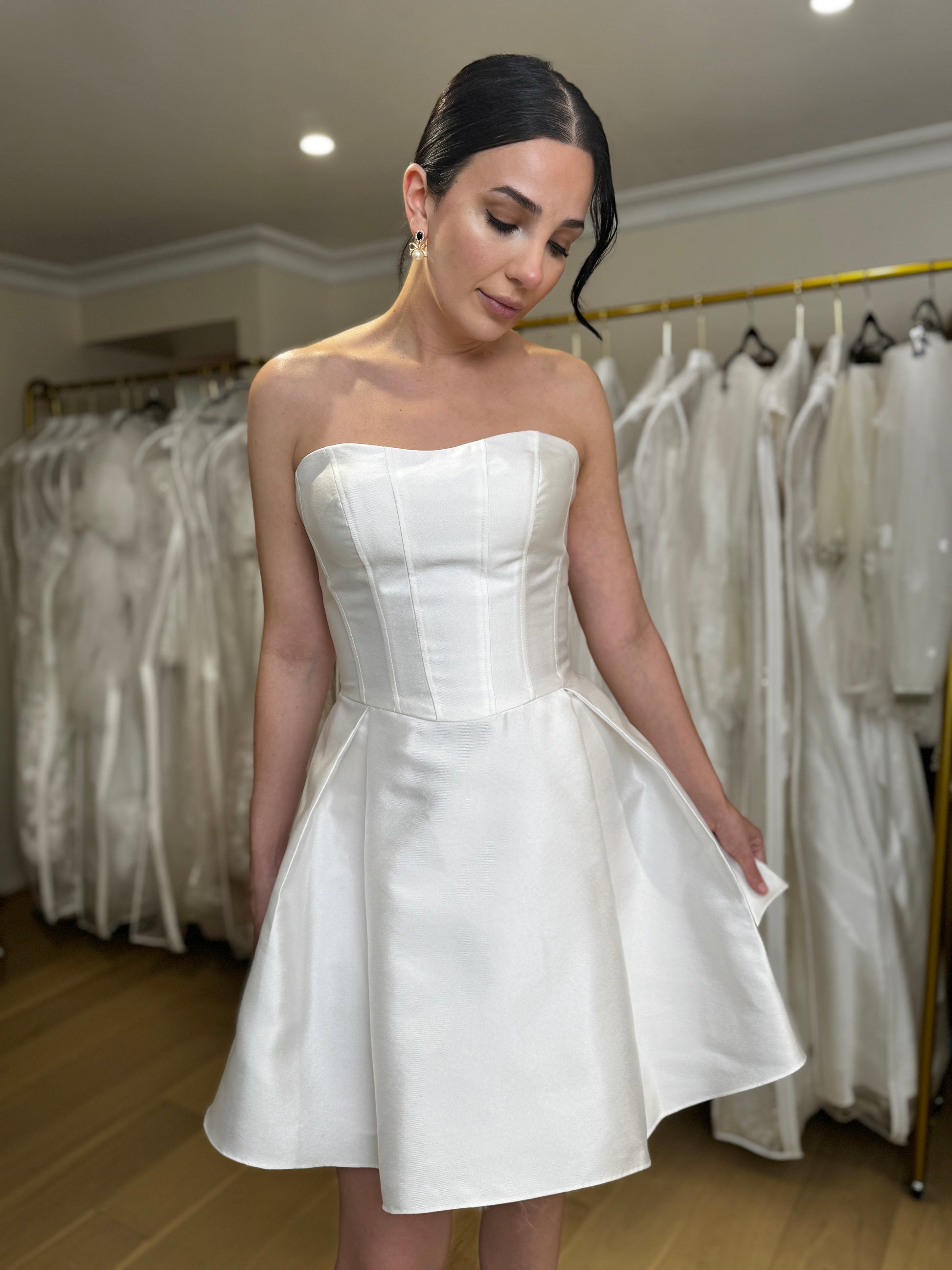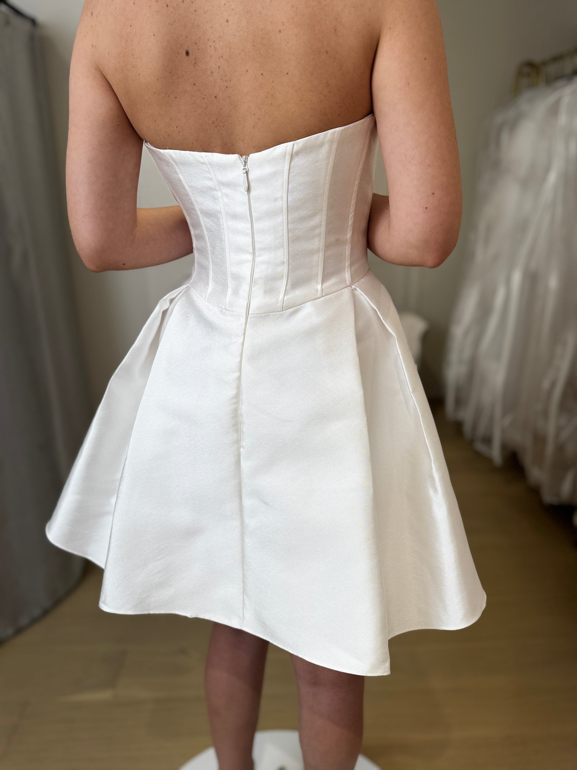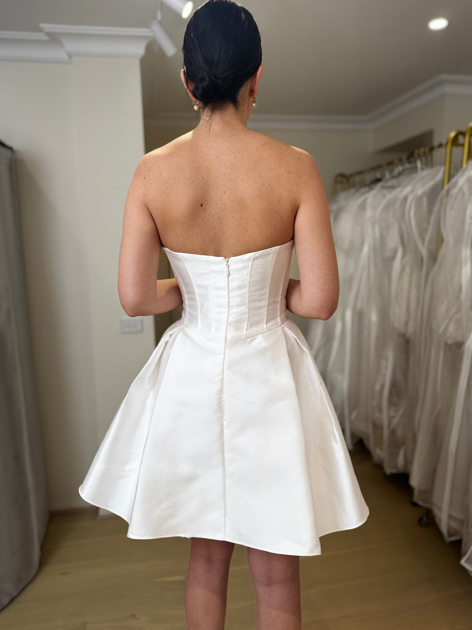 Available in size 10 (fits AU12 – AU14) with dual zip and lace-up back for flexible fit. Perfect for reception, engagement or after-party looks.
